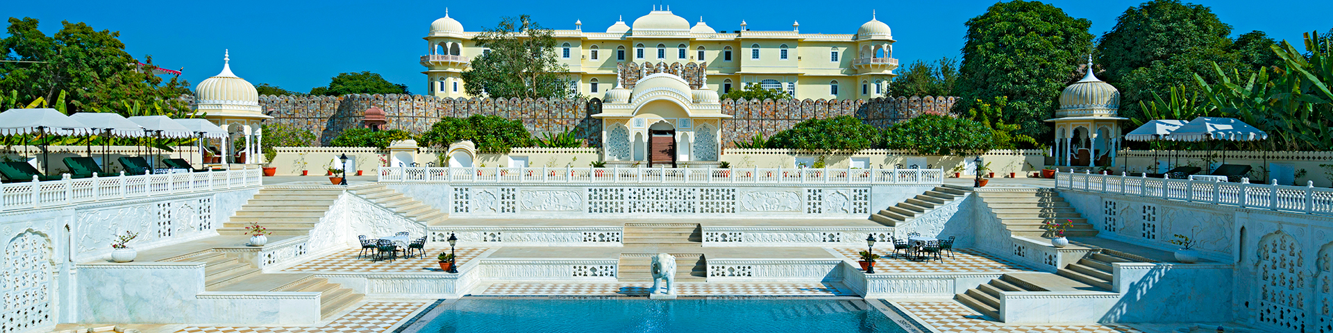 Nahargarh is magnificently poised near the forest of Ranthambhore, amidst the dense expanse of trees and abundant wildlife. This fascinating royal retreat is just a few yards away from Ranthambhore National Park- the Tiger inhabited wildlife sanctuary of Rajasthan. Stretched across acres of land, and encompassed by lush wilderness, Nahargarh dressed in ivory white fortification and set amidst thousands of trees offers a tranquil experience of royalty and wilderness.